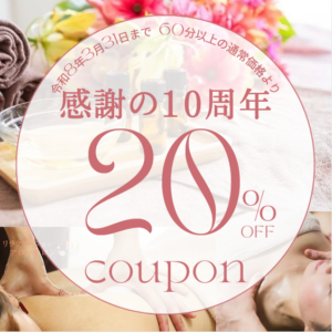 そんな当店で日ごろのお疲れ解消と日々の健康や活力に10周年記念クーポンを是非ご活用ください(*^-^*)